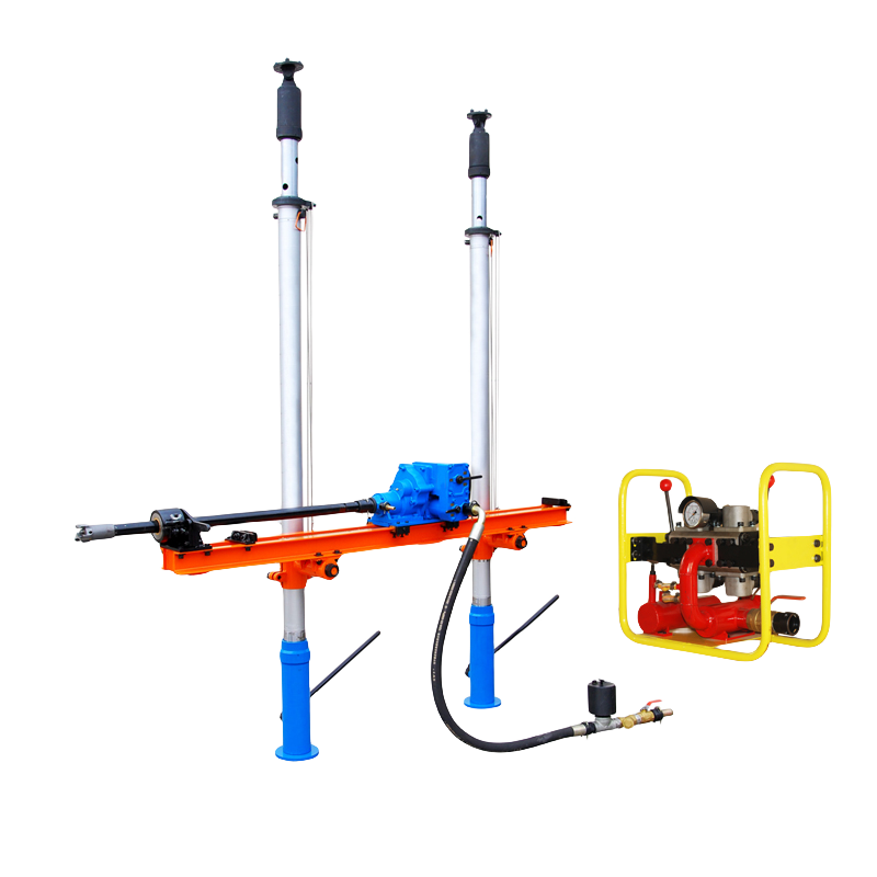 ZQJC氣動架柱式鉆機是專門為井下不易使用電源的巷道設計的,該機為氣缸頂緊,帶有正反轉,由氣動馬達帶動齒條來進給和后退,該設備具有輕便、安全、移動方便、維修簡單的特點,從而大大降低了工人的勞動強度。