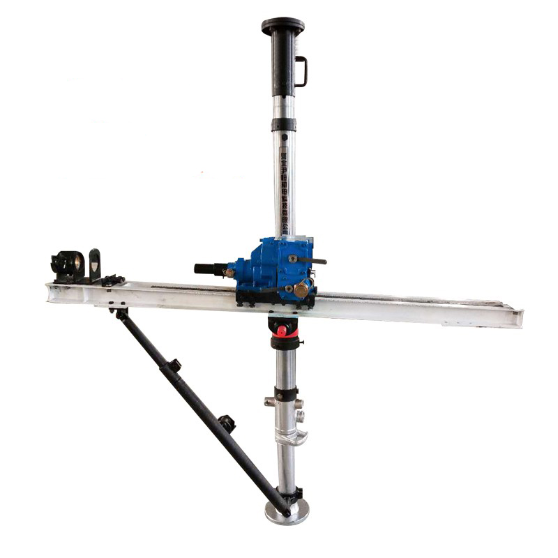 ◆單立柱式支撐更適應于狹窄工作條件下鉆進作業。支撐柱終端內部采用了高強度彈簧裝置,可持續延伸給力,保證了整機的穩定性。